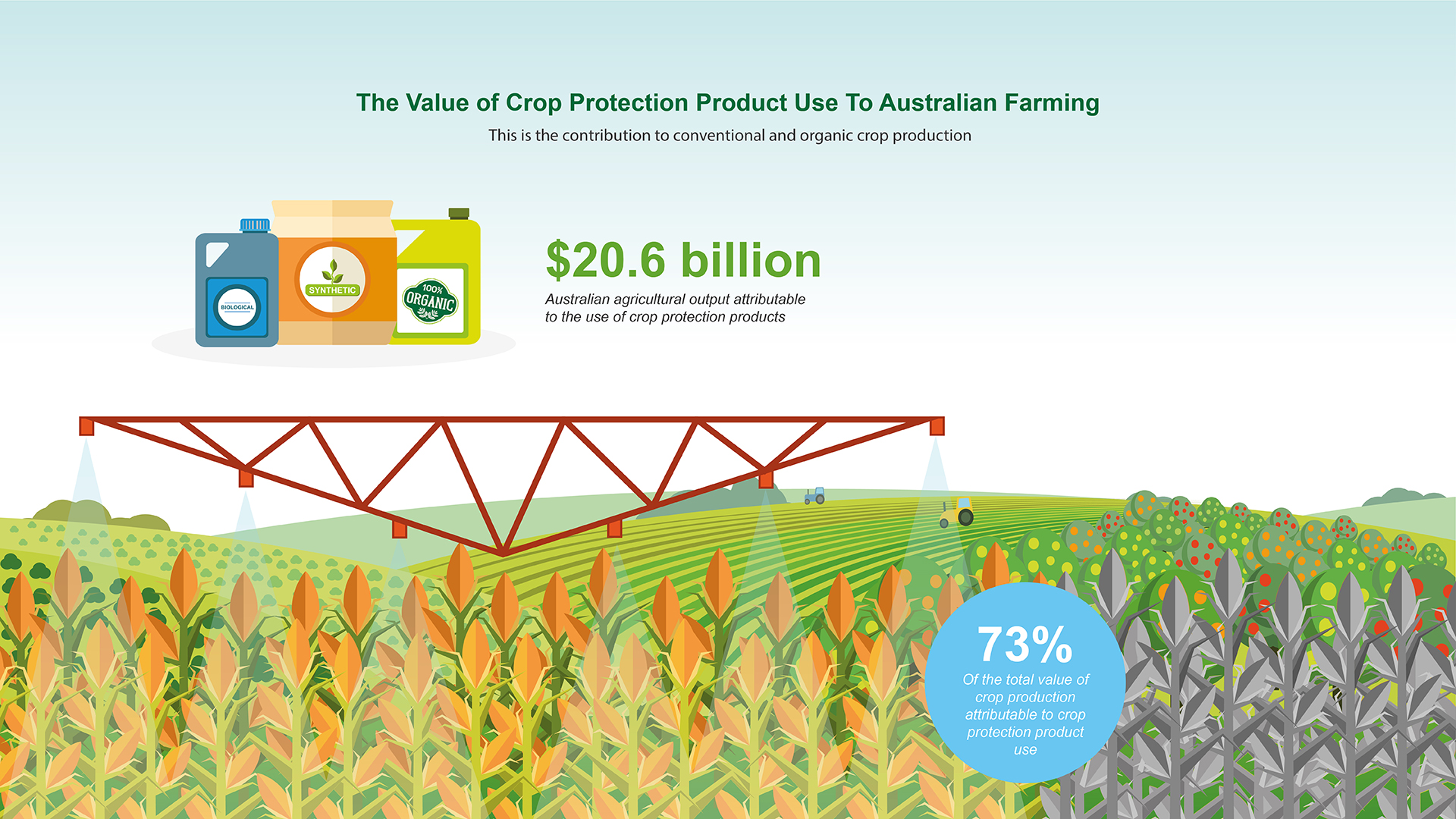 The use of crop protection products directly enables $20.6 billion to Australian farming output annually, providing a significant boost to agriculture as it powers towards being Australia’s next $100 billion industry.